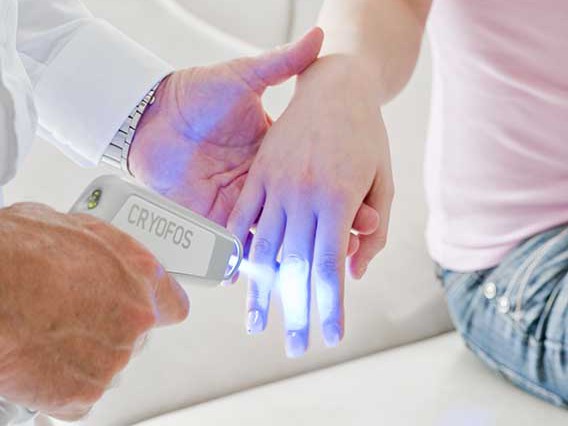 Cryofos ist sehr eng an die Bedürfnisse im Arbeitsalltag konstruiert. Die Bedienungselemente sind einfach und übersichtlich aufgebaut, die Ergonomie ist hervorragend. Neuartige Konstruktionsdetails erlauben eine Anwendung auch in kleinen Räumen. Durch sehr kompakte Außenmaße nimmt das Gerät auch bei Nichtgebrauch kaum wertvollen Behandlungsraum weg. Ein eingebauter Infrarotsensor misst die Hauttemperatur unmittelbar im Behandlungsgebiet, so dass ein präzises Arbeiten – auch im Gesicht oder an frisch genähten Wunden – gewährleistet ist.
